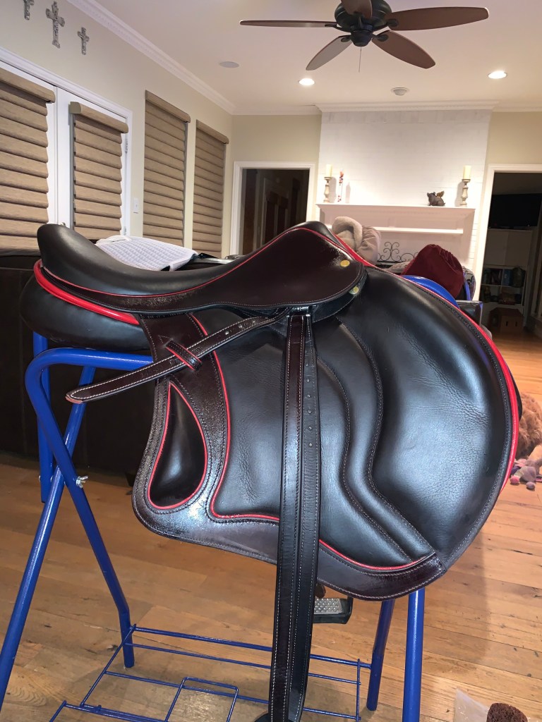 2019 Stack house, Not entirely sure of stack house measurements but 18 seat, 4 inches across pommel. Fits me perfectly and I’m a 3 AA flap in Devoucoux. It’s been used under 10 times. Asking 3,000, ( brand new upward 6,000) price negotiable. Selling due to sponsor conflicts!