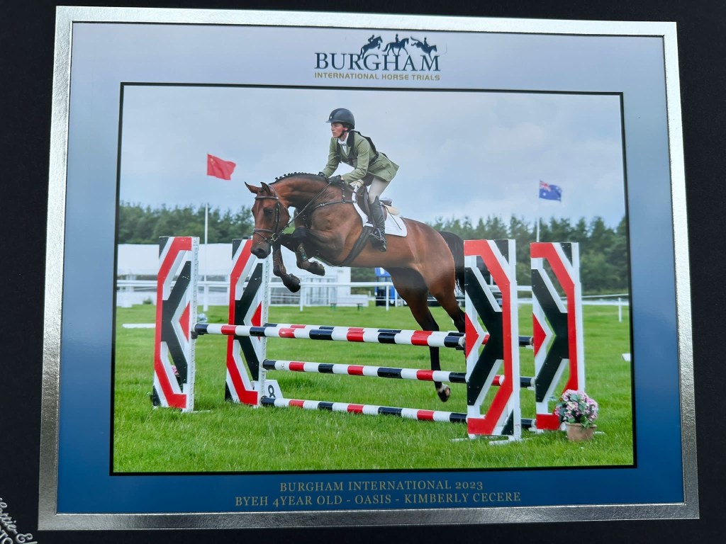 Oasis as she’s affectionately known is a four year old- Anglo European mare- purchased by the Tinney’s in July of 2023. Sourced by Kimmy Cecere and bred and owned by Mark Hogan, Oasis was the highest rated four year old in the UK during the 2023 season. Samantha has high hopes for this young mare!